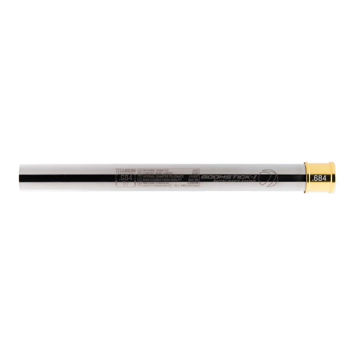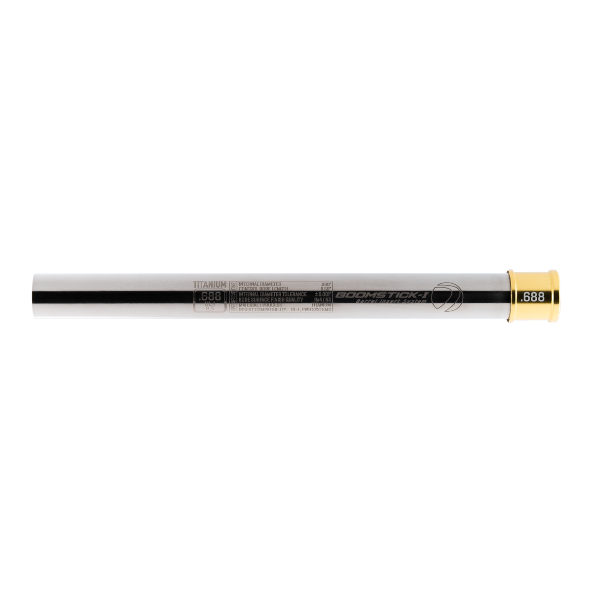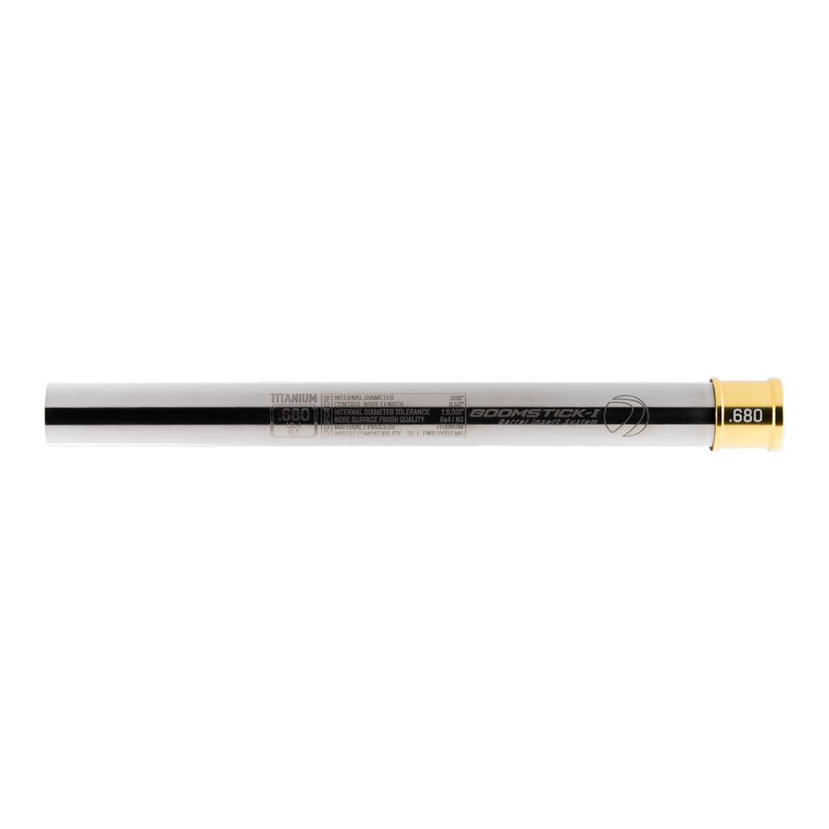 The Boomstick-I Titanium Icon Edition inserts feature a 8.5” control bore that is multi-stage honed for frictionless velocity control, minimal turbulence, and maximum trajectory stability.